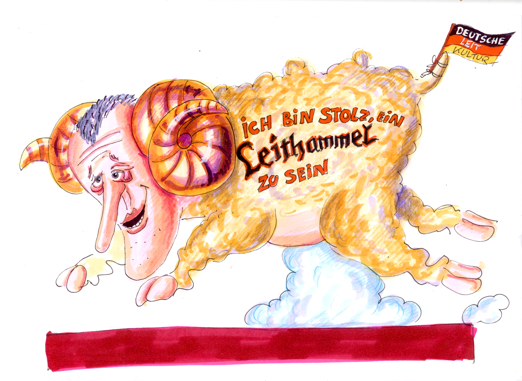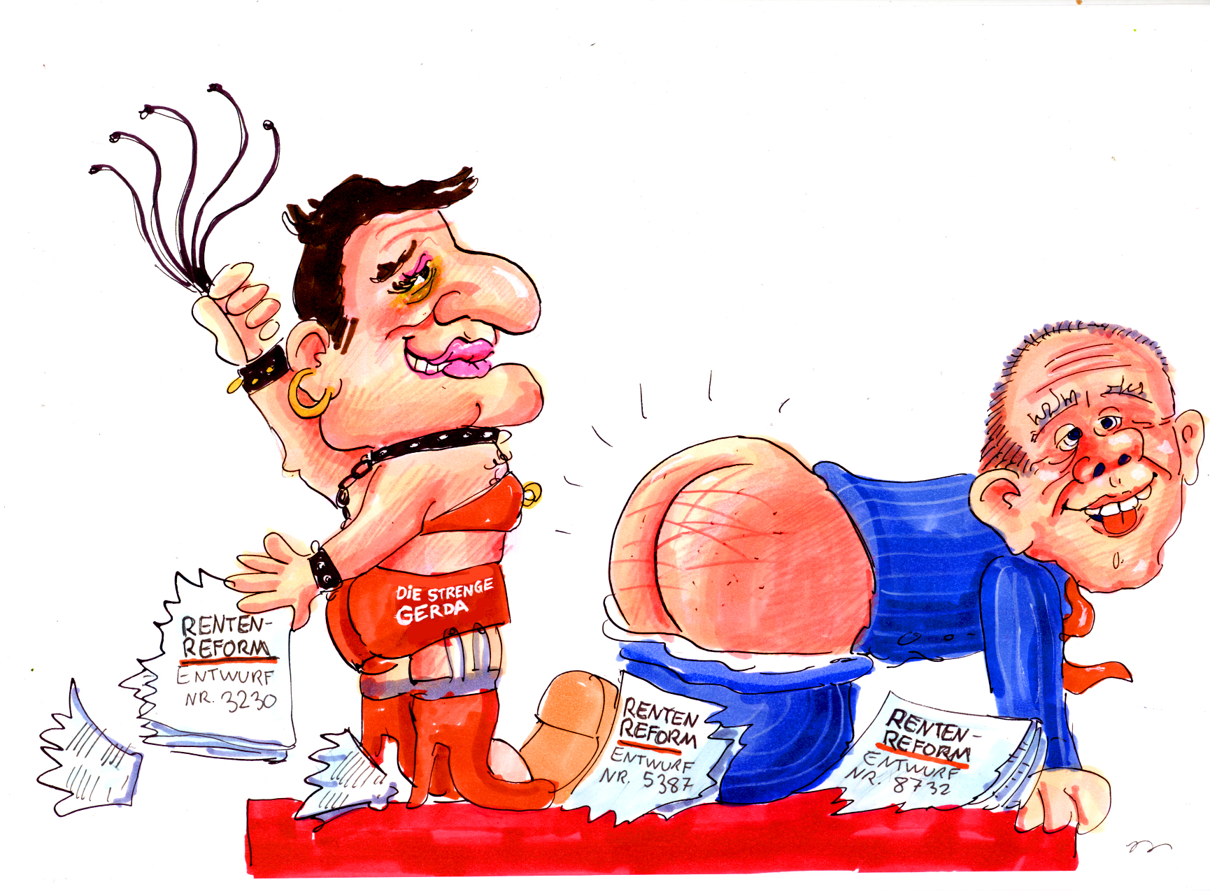 Entwürfe für politische Wagen im Düsseldorfer Rosenmontagszug 2001