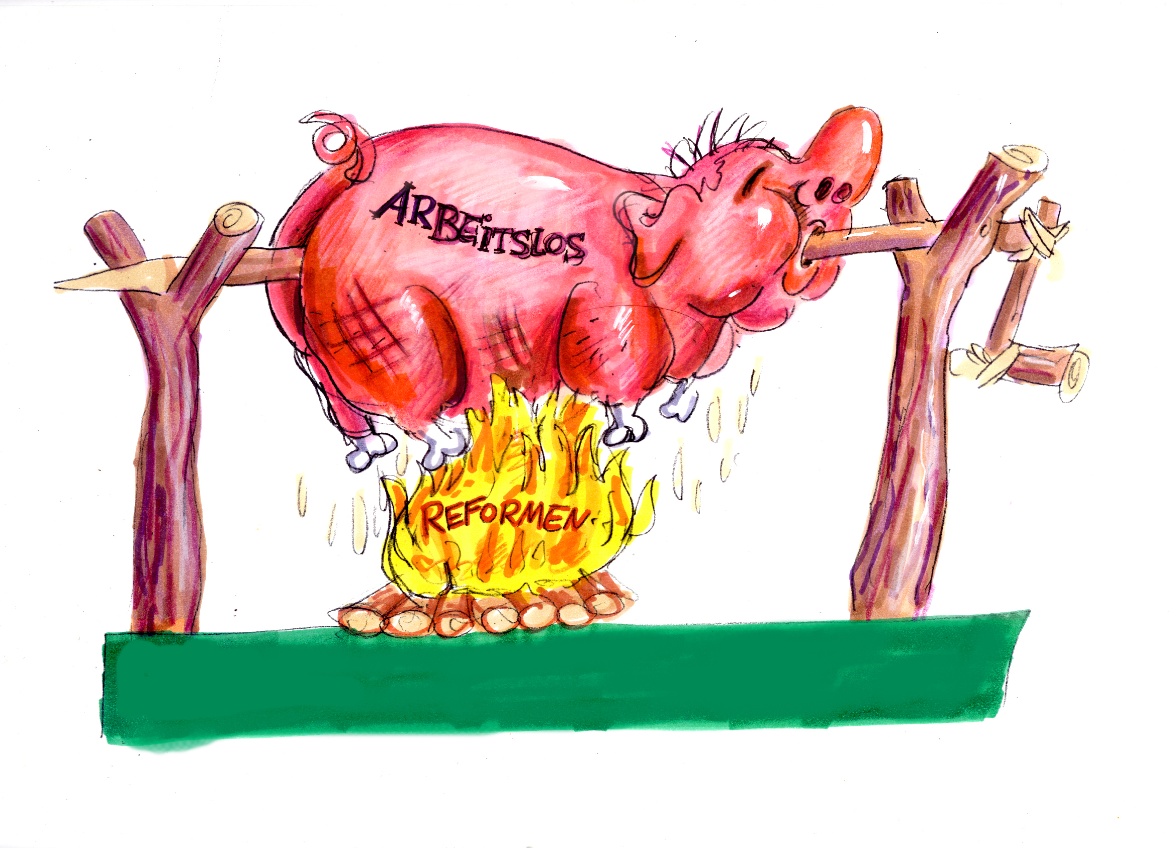 Entwürfe für politische Wagen im Düsseldorfer Rosenmontagszug 2005