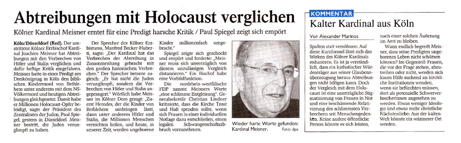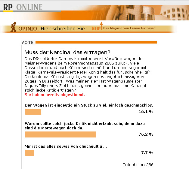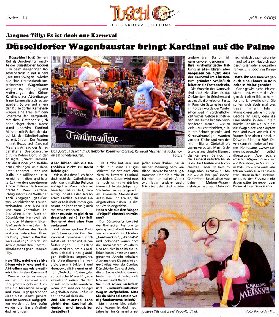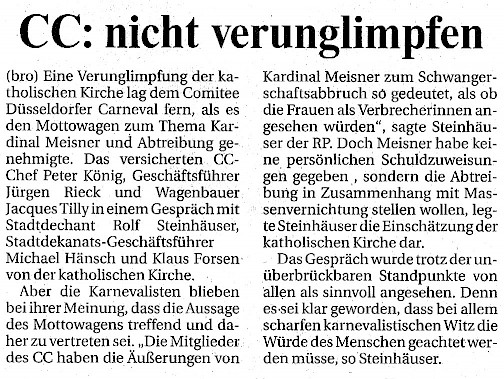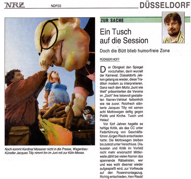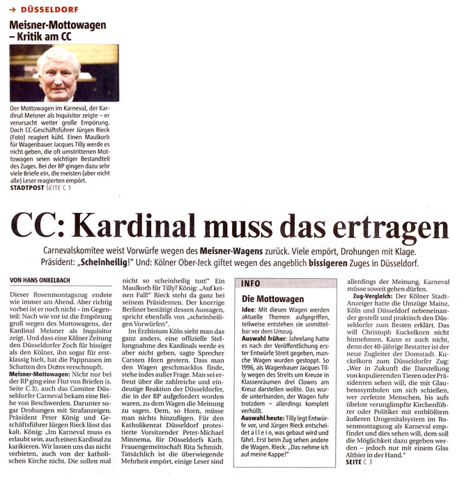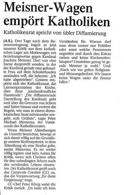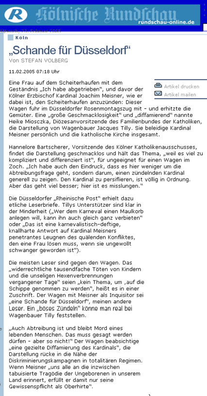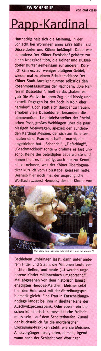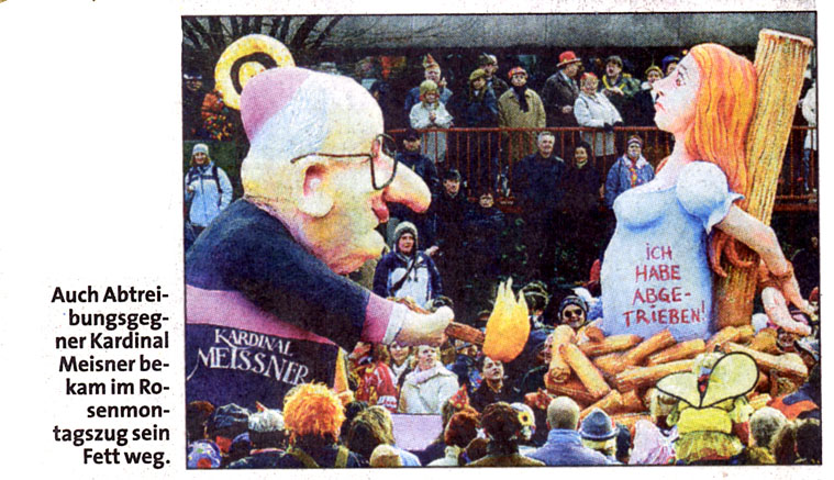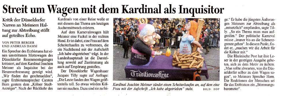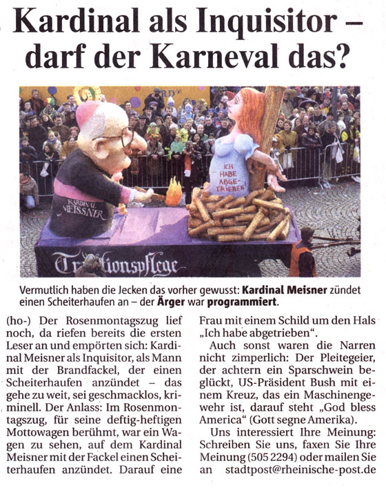 Presse zum Kardinal-Meisner-Skandalwagen im Rosenmontagszug 2005