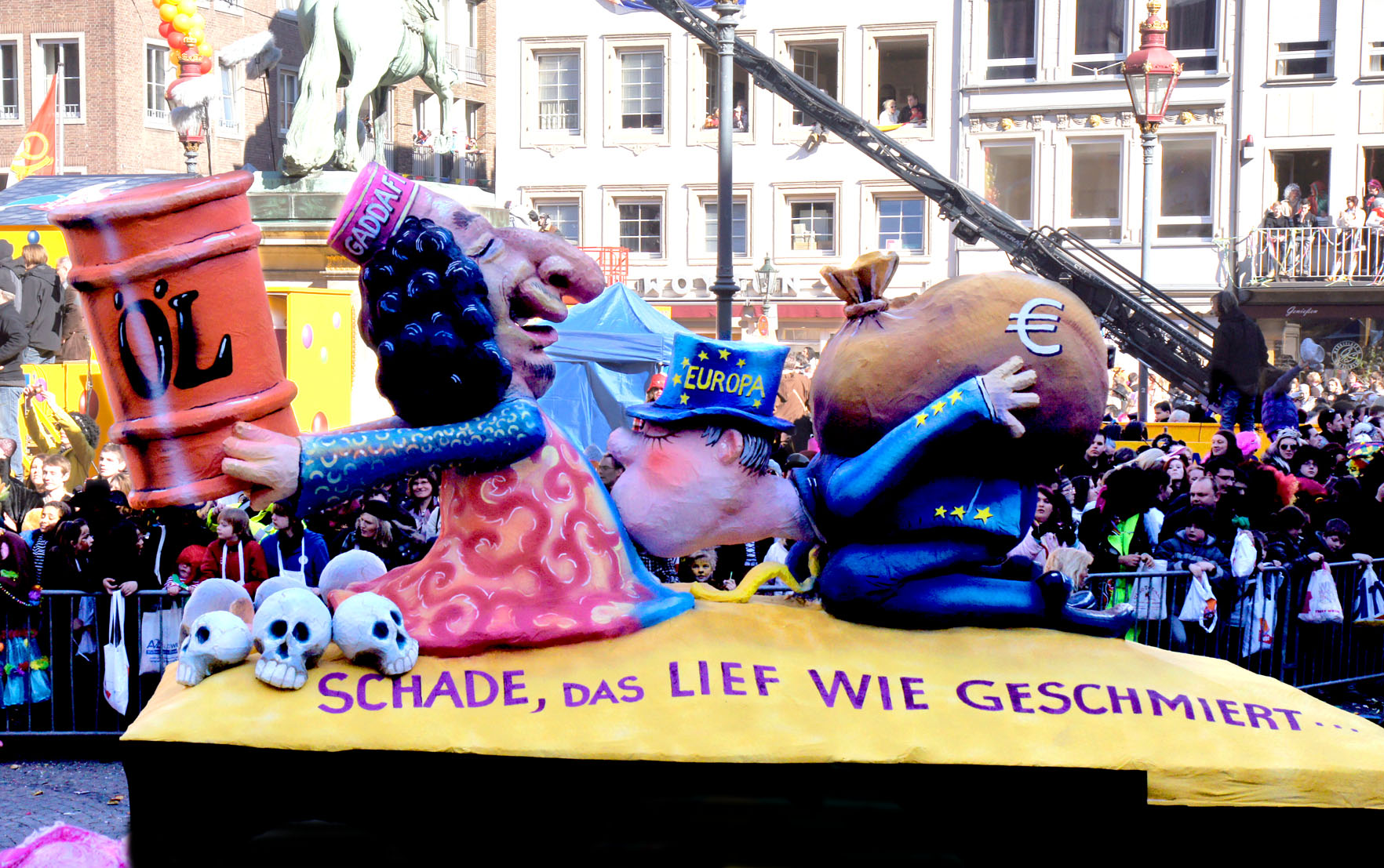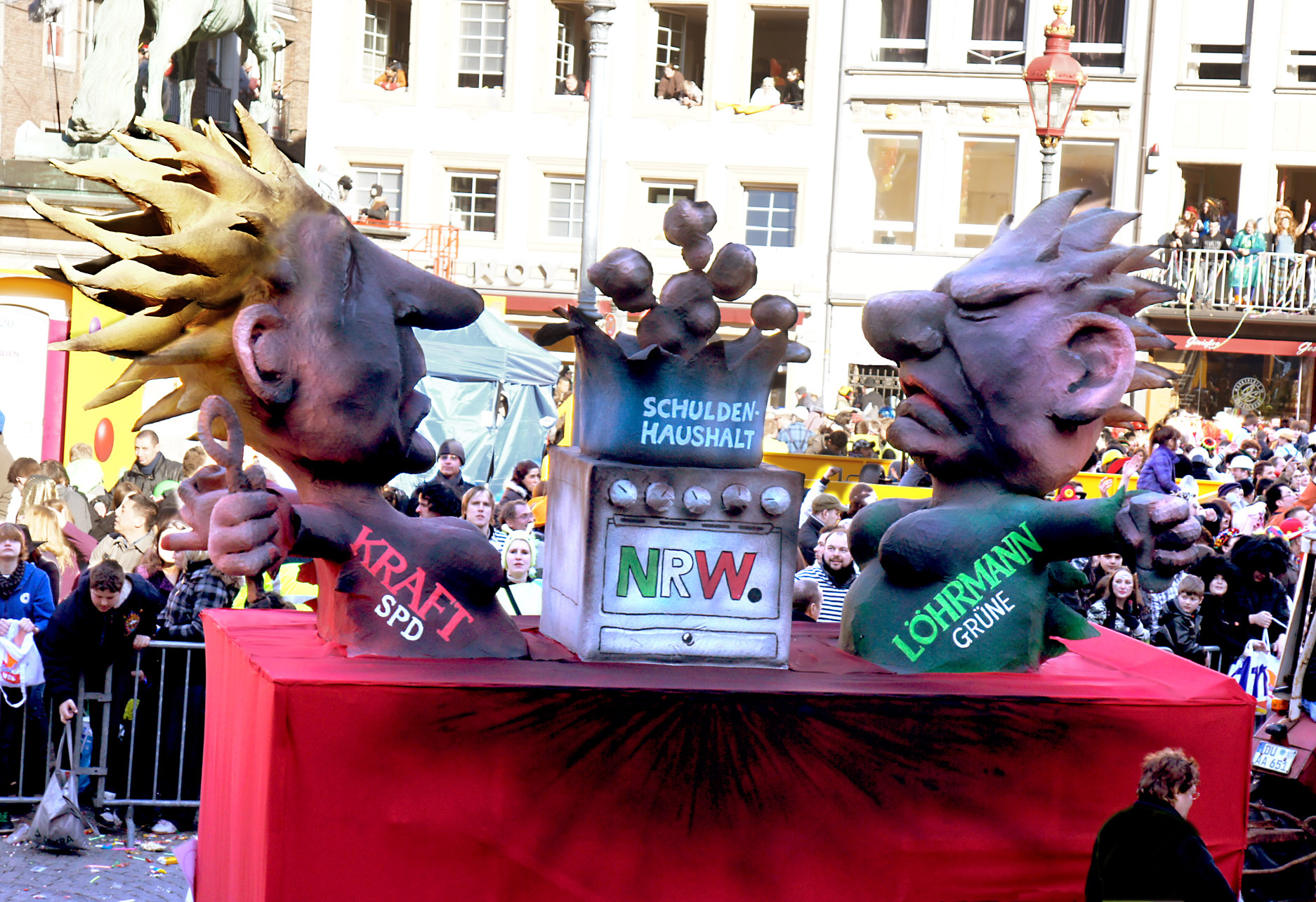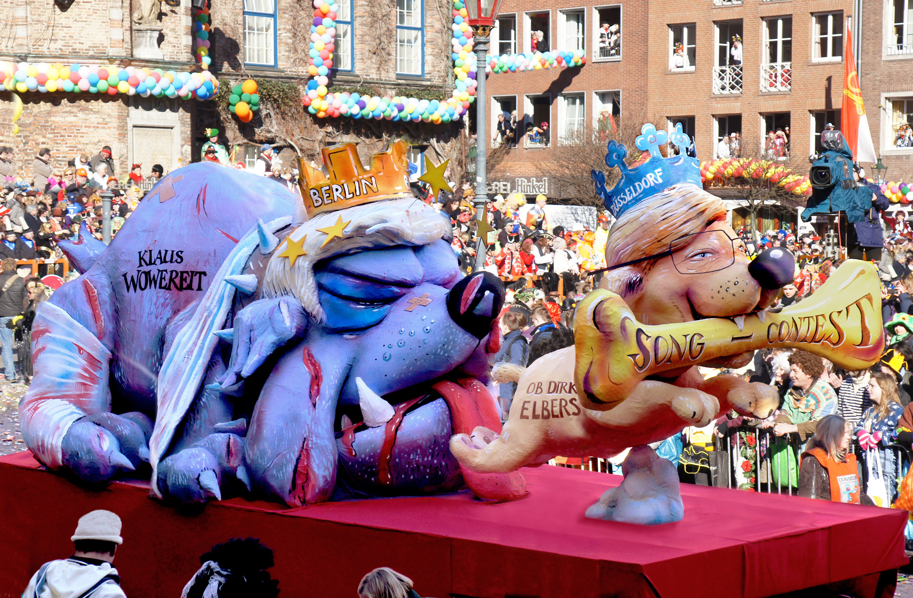 Aus der Bewerbung um die Austragung des Eurovision-Song-Contest 2011 ist Düsseldorf als Sieger hervorgegangen. Hier unser Düsseldorfer Bürgermeister Dirk Elbers mit dem goldenen ESC-Knochen, hinter ihm schwer abgeschlagen der schlechte Verlierer Berlin bzw. der Regierende Bürgermeister Klaus Wowereit als zerschmetterte Bulldogge.