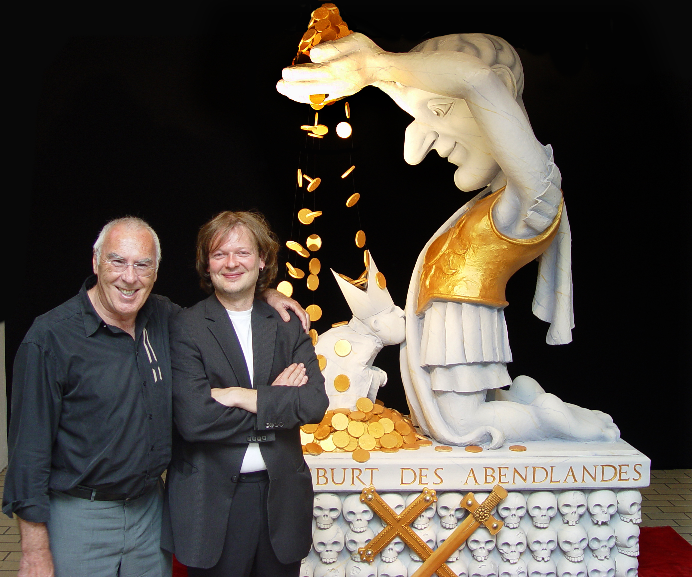 Herbert Steffen und Michael Schmidt-Salomon vor Kaiser Konstantin