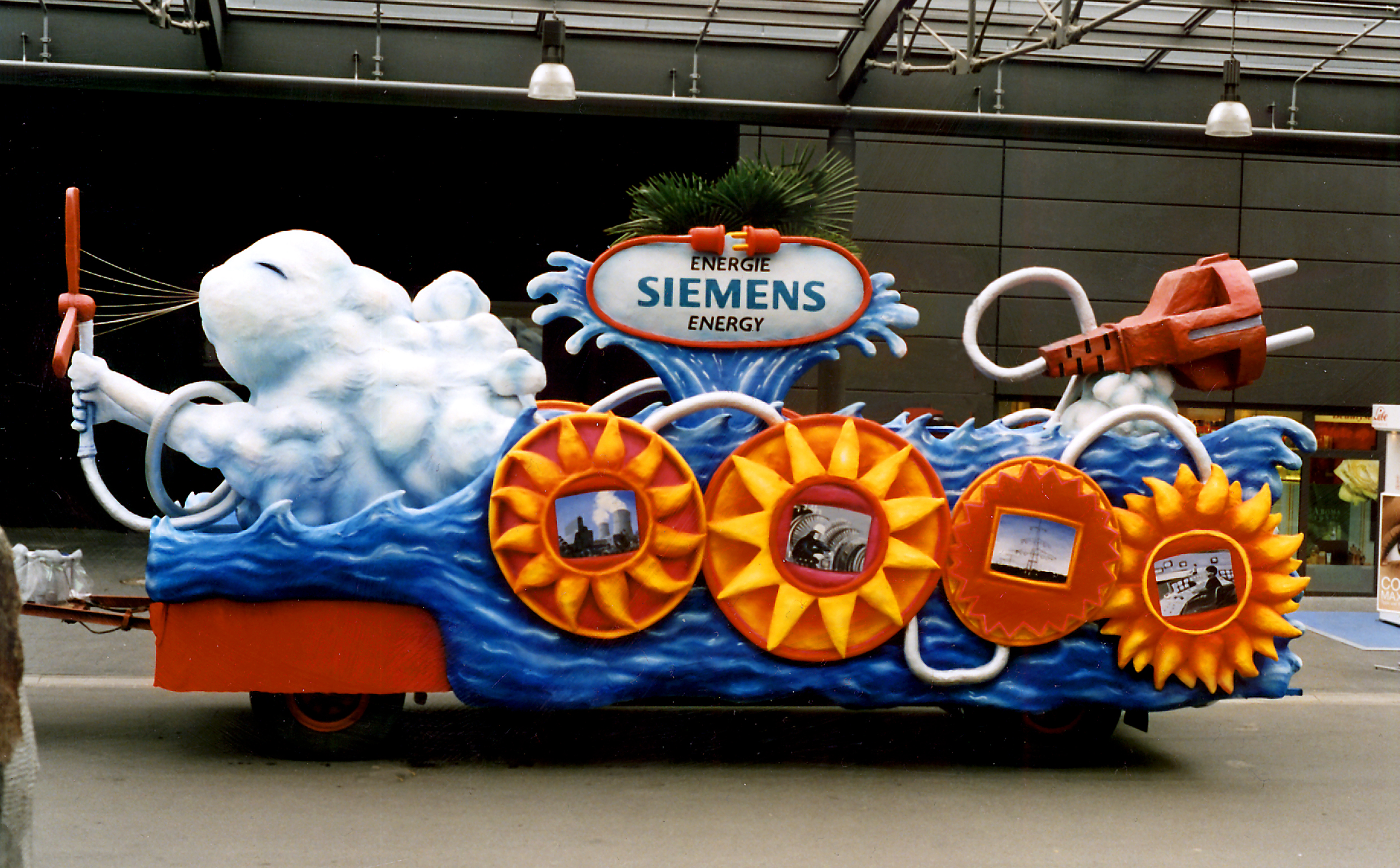 Für die Agenturen CSS GmbH, München, und die Wuppertaler G&D Event Kommunikation realisierten wir eine Parade im Auftrag des Siemens Konzerns. Am 7. Juni 2000, dem Weltpartnertag des Siemens-Konzerns, haben wir das EXPO-Gelände mit drei bunten Paraden in ein gigantisches Open-Air-Fest verwandelt. 400 Teilnehmer, phantasievoll erbaute Großfahrzeuge, ausgefallene Kostüme, ein chinesischer Drache und drei Bands zogen über eine festgelegte Route. Jeder der fünf Paradewagen repräsentierte einen eigenen Siemens-Geschäftsbereich.