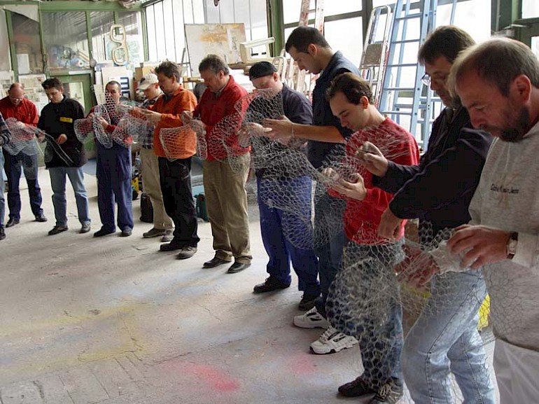 - Ein Tag für die Vorbereitung durch das Tilly-Team: Halle Leerräumen, Draht schneiden, alles aufbauen, was man zum Workshop braucht, Einkaufen.